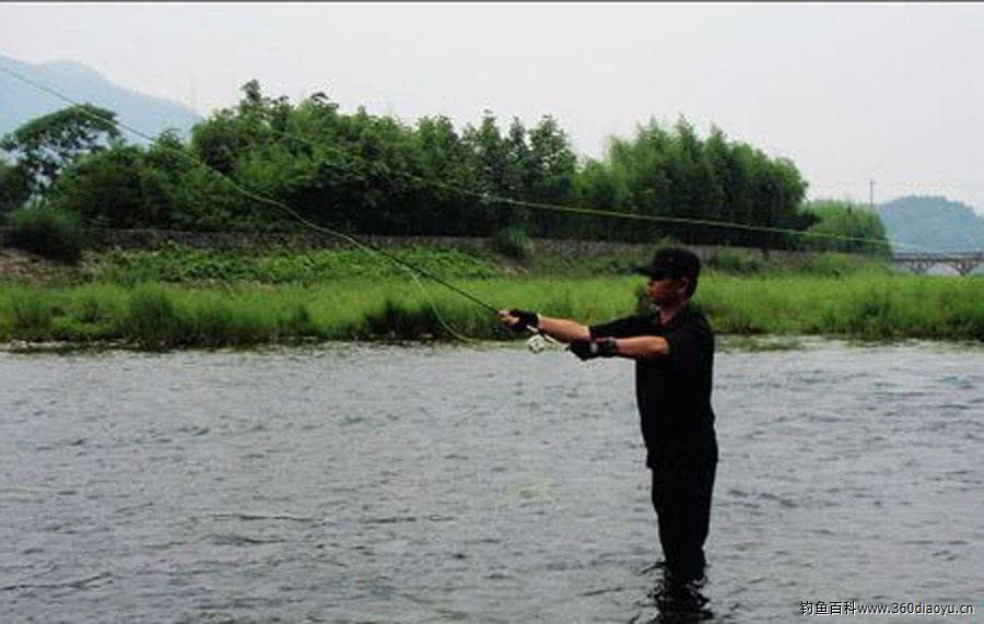 在钓饵落水的一瞬间,采用蜻蜓点水式的方法来提竿。这需要完全利用腕力来完成钓饵点水的动作,以避开弄湿了羽毛。只要水体中有马口鱼存在,不管钓钩是不是接触到了水面都是会上鱼的。