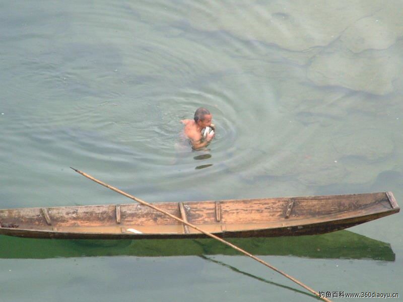 老汉一个猛子,扎进水里,犹如一只没有翅膀的鱼鹰,动作敏捷,技艺高超。