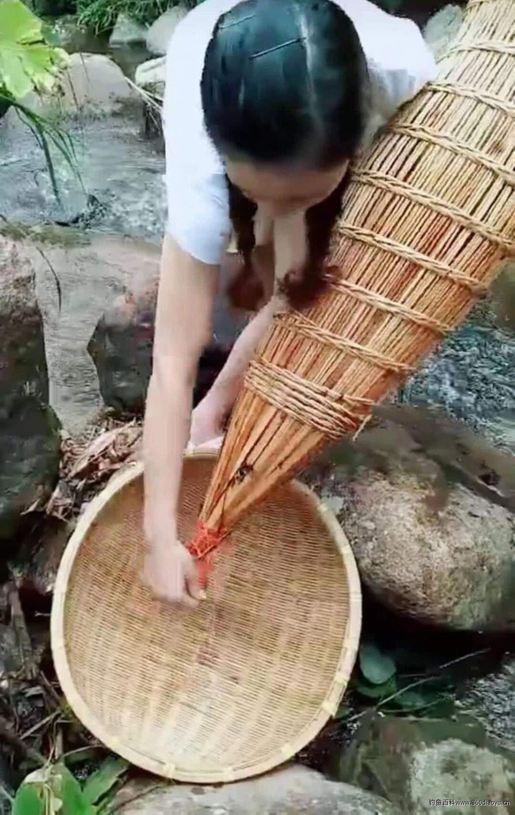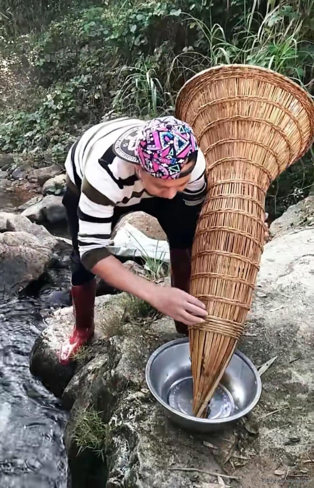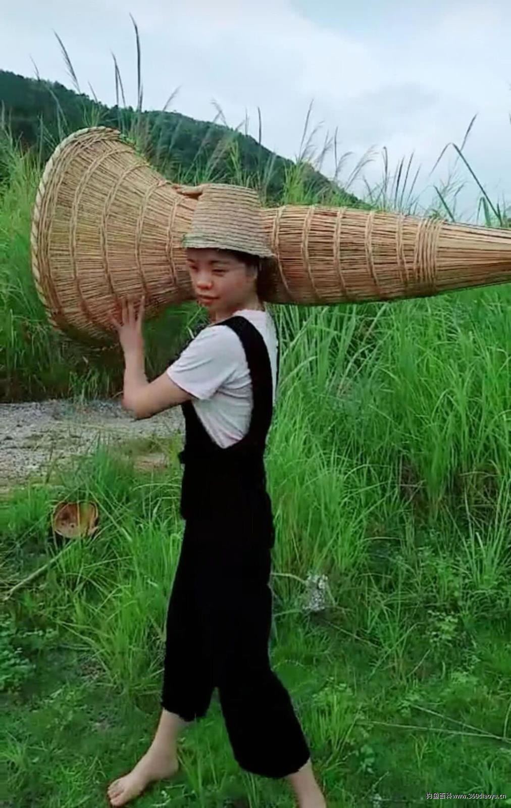 鱼笼呈喇叭筒状,类似的大型花瓶,用竹篾编织而成,鱼笼捕鱼的奥妙在于:它的外部是一头闭合的外套,开口内重叠一个同口径如呈漏斗状的内套,组合后用篾丝固定,将鱼笼安放在沟渠内垒起石坝处,鱼笼入口迎着水流,放置在溪流之中。开口最初相当宽,鱼儿易于从开口处游进笼中,而入口末尾的交叉枝条阻止鱼儿逃离,鱼一旦钻进鱼笼肚子里就出不来了。